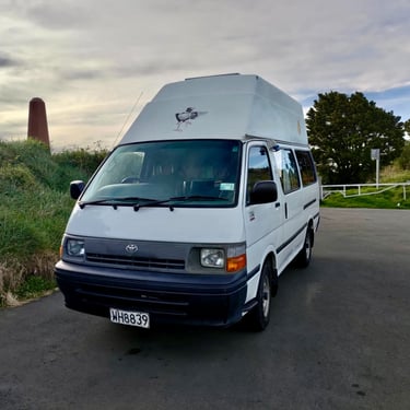 Taková koupě auta na Zélandu je pak další zajímavá a pro Evropana docela nezvyklá věc. To si takhle přijdete vyzvednout auto, majitel mrkne, že máte peníze, dá vám do ruky klíče a vymění je s vámi za peníze. To je, prosím pěkně, vše, co oficiálně potřebujete. Vám si pak stačí dojít na poštu a tam prohlásit „auto je moje, napište ho na mě!“ My k tomu přidali to, že jsme si vyžádali aleaspoň extra stručnou smlouvu, že ten a ten prodal auto za tolik a tolik tomu a tomu a dva podpisy. Ten, co auto prodává, pak doma sedne k internetu a napíše kamsi (inspektorát nemají, tak asi vládě, nevím. Oddělení, co spravuje auta), že auto prodal. Ten co auto kupuje, pokud má zélandský řidičák udělá po internetu to samé, akorát, že on auto koupil. My museli na poštu. Na poště jsme si vzali do ruky formulář, vyplnili pár řádek, odevzdali paní na přepážce a ta zdarma v systému přepsala majitele a vydala nám novou kartičku, že je zaplacená silniční daň. Žádná kontrola smlouvy, žádné plné moci, žádní dva lidé najednou, žádný techničák, nic. Prostě prohlásíte, že auto je vaše a paní řekne ano, auto je vaše. No a tím vám představujeme naší novou Tsunami. Ještě předtím, než jsme našli tu naší, jsme přemýšleli nad novým jménem a protože Kanadská Hondička to na jméno nedotáhla, museli jsme na tom trochu zapracovat. No a když v Čechách máme Lavinu, která se táhne, jako smrad, ale nic ji nezastaví, u protinožců, když máme japonské auto, musí to být analogicky stejně smrtelně nebezpečná, nezastavující se, Tsunami. Toyota Hiace, 1997 (o rok mladší než Lavina), 2.4L benzín s vysokou střechou. Náš domov.