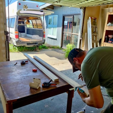 Několik prvních dní se slilo do jednoho velkého čekání a upoceného stavění rámu postele. Než jsme vymysleli konstrukci, všechno naměřili, nařezali na správné rozměry a definitivně doladili podobu, byla to hrozná agónie a náš start se neskutečně vlekl. Samozřejmě jsme (jsem) několikrát proměřil a něco uřízl špatně a zásoby dřeva se postupně tenčili. Nicméně to nakonec jakš takš sedlo a až do konce, jsme nemuseli koupit jediný další kus dřeva. Jak se ale čas táhl a práce nám moc nešla od ruky, bobtnalo naše zoufalství, že snad z města nikdy neodjedeme a celý náš pobyt strávíme stavěním dodávky. Na začátku jsme si vzali do hlavy, že auto postavíme za čtrnáct dní a skoro po týdnu jsme to dotáhli tak akorát k rámu postele. To vše za opakování Zuzančiny mantry „čtrnáct dní.“ Někdy před koncem druhého týdne na Zélandu muselo padnout důležité rozhodnutí, zda objednat další týden ubytování a nebo se přesunout na farmu, kam se nám jít bydlet úplně nechtělo. Spaní pro hosty měli zařízené v plechové boudě, kde bylo zázemí pro koňáky s vybydleným obývákem plným myší a zatuchliny, záchodem se studenou sprchou, co už své lepší dny měla dávno za sebou, garáží, ve které byla dílna a dvěma pokoji v ne moc lepším stavu. No zkrátka myšárna. Na druhou stranu jsme měli vidinu ušetřených tisíce dolarů, třech jídel denně o které se nemusíme starat a méně přejíždění. Rozhodli jsme se do toho jít a v pondělí se přesunuli.