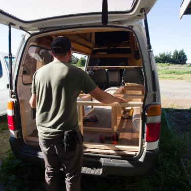 Náš stanovený den D (Zuzkou stanovený den D) se blížil přímo raketově a dodělanost auta termínu příliš neodpovídala. V pátek jsme se tak dohodli s Mariškou, že k našemu pobytu přidáme ještě víkend a že v pondělí pojedeme stůj co stůj. Ona by nás tam klidně nechala déle, což nám i nabízela, ale my zoufale nechtěli protahovat naše stavební utrpení. Někdy v sobotu jsme měli kompletně hotovou postel a připravený korpus kuchyně. Jediné co zbývalo (po snížení našich nároků a odsunutí části prací na někdy později) bylo vyřešení vodo instalace. Aby člověk mohl dostat na Zélandu certifikaci „Self contained“ tedy soběstačný vůz, který může parkovat na více místech, musí splňovat spoustu náležitostí, které jsou samozřejmě pruda. Nejvíce detailů je pak zapotřebí dodržet u instalace vody a nakládání s vodou odpadní. My poučeni spoustou videí a studiem odborných předpisů vyrazili na „poslední“ nákup, abychom koupili vše potřebné na vodu. Už na jistotu jsme jeli do karavanového obchodu, který byl přes celé město, že tam nakoupíme a trochu se s nimi poradíme. Jaké nemilé překvapení nás čekalo, když se nás ujal jiný pán, než obvykle a začal s námi jednat značně odtažitě. Já bych napsal, že to byl arogantní kokot, který nenávidí svojí práci a nenávidí turisty, co si do obchodu s vybavením na stavbu aut přijdou nakoupit a pro radu. Zuzka by řekla, že asi nebyl moc nápomocen. No byl jsem už asi přetažený. Nicméně výsledek byl takový, že jsme z obchodu odešli s nepořízenou a s dalšími vráskami na čele, jak to uděláme. O jedno přání do vesmíru později a zjištění, že stejný obchod je asi tak deset minut cesty od koní, o kterém jsem do té doby nevěděl, jsme zakotvili v příslovečném ráji. U dveří nás přivítal milý pán, který se zeptal co sháníme. My mu řekli, že potřebujeme udělat vodu a on se usmál od ucha k uchu, že máme štěstí, že zrovna on takové systémy navrhuje a staví a že je zrovna v obchodě na záskok. Během čtyřiceti minut nám tak před našimi zraky seskládal celý systém včetně návodu, jak to později poskládat. My tak v neděli večer slavnostně umístili do auta kuchyňskou linku včetně vodního systému.