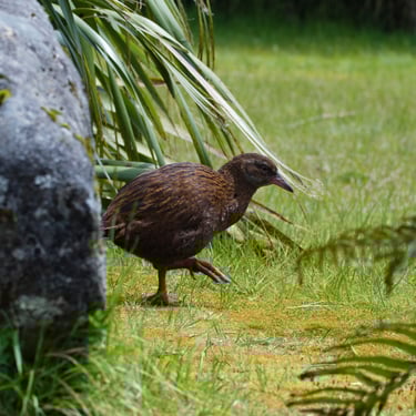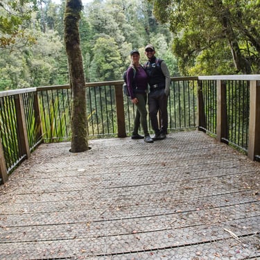 Poslední zastávkou pak bylo město Franz Josef nacházející se pod stejnojmenným ledovcem. Do domnělého startu v práci nám zbývaly čtyři noci a my se je rozhodli strávit všechny tady. Ubytování bylo nejlevnější široko daleko a navíc nás čekaly tři dny těžkých dešťů. Jediný hezký den jsme podnikli cestu k výhledu na samotný ledovec po jedné straně úbočí pod ledovcem. Čekalo nás několik hodin cesty vzhůru a občasného šplhání přes kořeny a místy skály. Visutých lávek na cestě bylo asi šest a jedna delší než druhá. Odhadem nejdelší mohla mít klidně přes sto metrů. Na konci cesty pak byl odměnou výhled na ledovec. Poseděli jsme, posvačili a přihnaly se mraky a celý horský hřeben zahalila mlha až do konce pobytu. Perfektní načasování. Další den vzhledem k tomu, že začaly prudké deště, jsme zvolili odpočinkové aktivity. Jednou z nich bylo zaplacení si výroby vlastního pounamu. Pounamu je tradiční maorský šperk se spirituálním příběhem. Jedná se většinou o jadeit vybroušený do různých tradičních tvarů. Někdy pak může být vyroben i z kostí nebo dřeva. Nebo čehokoliv jiného. My šli na broušení kamenu. Na workshopu jsme si vybrali vlastní kámen, na bruskách jsme ho postupně vybrousili do žádaného tvaru, předleštili a pak ručně dohladili. Já Zuzce vyrobil srdíčko a od ní jsem dostal zelený, kapkovitý kamínek s linkou, která trochu připomíná obrys hřebene. I přesto, že jsme konstatovali, že se nám na místě moc nevěnovali a byla to spíš továrna na peníze, jsme byli nakonec se svými výtvory moc spokojení. Na třetí den jsme si schovali návštěvu chovné stanice ptáků kiwi. Ve volné přírodě je už bohužel prakticky nemožné je spatřit. Jednak to jsou noční tvorové a jednak je jich hrozně málo.