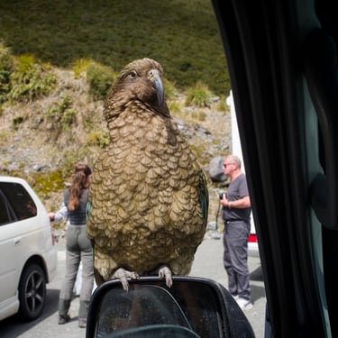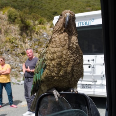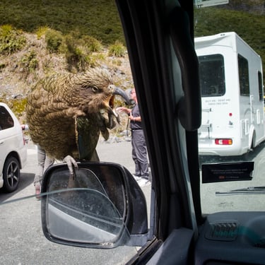 Te Anau, městečko, které je vstupní bránou do Milford soundu, místa, kam se sjíždějí všichni turisti při jejich objíždění jižního ostrova. Tady jsme si opět vzali nádherný kemp se sprchami tak čistými, že Zuzka chvíli přemýšlela, že by se snad i do sprchy měla zout (neudělala to). Na další den ráno jsme si i my naplánovali výlet do MS, ale s tím, že si aspoň před tím, po cestě uděláme půl denní túru do hor. Z Te Anau vede do MS jen jedna cesta, ale stojí za to. Postupně se kolem nás začaly zvedat štíty hor, klikatit se hlavní údolí, kterým jsme projížděli a my asi tak po druhé, po třetí dělali na Zélandu wow. Pod výstupem na náš malý výlet na Key summit, jsme zastavili na parkovišti a hned při výstupu uviděli našeho prvního papouška kea. Hopkal po parkovišti od jednoho auta ke druhému a vynalézavě somroval jídlo od turistů, kteří jsou jeho největší zhoubou. Papoušci kea jsou hraví a zvídaví a zároveň trochu rošťáčtí, kdy mají v oblibě různě okusovat auta a batohy a to je pak často stojí život. My tak samozřejmě odolali a žádné jídlo z nás nedostal, zato jsme ale měli fotky. Výstup k vrcholu byl poměrně krátký, ale umožnil nám rozhled z větší výšky na jednotlivé štíty hor, které byly stále zasněžené. Při návratu k autu se na scéně ukázal další hráč a to v podobě nelétavého ptáka weka. Taková hnědá koule, velikosti slepice, která obecně působí vtipně a je taky velmi zvídavá. V jeden nestřežený okamžik nám tak i hopla do auta, asi aby zhodnotila kvalitu naší vestavby. Aby se dalo dostat do Milford soundu po souši, prorazili inženýři v poměrně pozdní době tunel skrz masivní štít hory. Nejlepší částí na tunelu ale je, že je jednosměrný, na obou stranách jsou světla a u fronty čekajících aut vždy krouží papoušci kea. Po cestě k moři tak na auto před námi přistáli hned asi tři a po cestě zpět nám jeden z papoušků přistál hned na zrcátku spolujezdce a trpělivě Zuzce pózoval celou červenou. Samotný Milford sound jsme, se Zuzkou konstatovali, že na celém výletu, byl nejnudnější. Uznáváme však, že tam byla tuna sandflies, které jsou na celém západním pobřeží jižního ostrova a jsou nejotravnější, nejkousavější věcí na Zélandu, a také proto, že kouzlo místa tkví asi v tom, si zaplatit loď a nechat se vyvézt po fjordech v okolí.