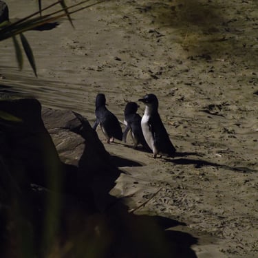 Po pár nocích jsme se museli stočit zpět k severu a hlavně si v Dunedinu vyzvednout naše papíry k certifikaci, které jsme si nechali poslat k Martinovi (opět děkujeme). Dali jsme si čaj, za okno vystavili zelenou kartičku s certifikací a vyrazili na sever směrem na Christchurch. Pospíchali jsme totiž za další atrakcí a to do Timaru. Města, kde hnízdí další tučňáčci a to tentokrát nejmenší, tučňáci modří. Po cestě dolů na jih jsme v Timaru už jednou byli a zjistili právě, že tam tuňáci jsou, ale kromě jednoho schovaného v hnízdě, ze kterého jsme viděli jen bříško, neviděli nic. Poučeni tak žlutým tučňákem jsme plánovali příjezd na západ slunce. Hnízda tučňáků se ve městě nachází u jednoho okraje pláže, který přiléhá k umělému břehu oddělujícímu nákladní přístav. Po příjezdu už byl celý břeh obsypaný turisty. Masu lidí na místě naštěstí usměrňovali dobrovolníci ministerstva životního prostředí. Stáli jsme tam, soumrak se zase zvětšoval, pořád se nic nedělo a začínalo se stmívat víc a víc a dělat vlastně spíš tma. Vzhledem k tomu, že byl pátek se tak projevil surrealistický obraz, kdy na konec mola projíždělo jedno tuningové auto za druhým a na chodníku stáli turisti s foťáky vyhlížejícími tučňáky. Opět v jednu chvíli to zašumnělo a malí panáčkové se začali kolébat z oceánu. I já uznávám, že nejmenší modří tučňáci jsou roztomilí a srandovní. Vždy ladně vypluli z oceánu, nemotorně se postavili na nohy, rozhlídli a pak ve stínech podél kamení začali postupně kličkovat ke svým hnízdům. No byla to sranda.