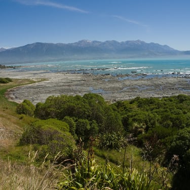 Od cesty na sever podél oceánu jsme se na dvě noci posunuli trochu více do vnitrozemí do Hammer Springs, termálních lázní, ve kterých jsme nebyli. Pořád mě v té době trápily záda a tak jsme se po okolí tak pošourávali. Krajina byla kolem taková podhorská, převážně lesnatá a v okolí kempu se nacházel krásný lesopark s jezírky. Povedlos se nám taky identifikovat jednu z příčin zatékání do auta, kdy přestavbáři před námi se s tím nemazali a jeden z kabelů ke světlům místo průchody vedli přímo skrz těsnící gumu, která tím pádem netěsnila. Povzbuzen svými předchozími pseudo elektrikářskými dovednostmi jsem tak nelenil, kabel přecvakl, protáhl a nasvorkoval. Zvládl by to i studen základní školy, ale já byl na sebe pyšný. Škoda jen, že to vlatně asi nepomohlo, protože když přijde opravdu prudký déšť, stále do auta vzadu trošku teče. Asi je někde ve spoji laminátové střechy a zbytku auta fuka v tmelení a chtělo by to projít a přetmelit. Po dvou odpočinkovějších nocích jsme se opět vydali na cestu a na noc zakotvili před Kaikourou v Peketě. Kemps jsme měli zase hned u oceánu, který v tom místě byl krásně divoký. Obecně jsme konstatovali, že tu voda má nádhernou modrou barvu, jakou jsme zatím ještě nikde jinde neviděli. V kempu nás pobavilo, když jsme si všimli, že tu sem tam také frčí „kanadský“ trend nechávání pěkných kamínků někde kolem kempovacích míst na zkrášlení a udělání radosti jiným. Zuzka si tak přivlastnila jedno nabarvené soukamení sestávající z žáby sedící na blatouchu. Od přilehlé Kaikoury jsme si slibovali, že to bude husté surfařské město, které bují životem, ale ve výsledku to za nic moc nestálo. Světlejší výjimkou tak pouze zůstalo, že u města vedla hezké procházkové kolečko přes útesy a zpátky podél vody se spoustou ptactva a již běžných tuleňů a lachtanů. Fotky z toho budou určitě nádherné.