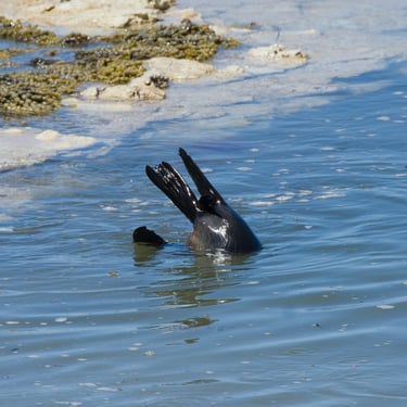 Katiki beach byla naše další zastávka a to pár hodin jízdy jižně od prvního spaní. Zastavili jsme na free kempingu hned u oceánu mezi jehličnany. Kolem nás byla dlouhatánská písečná pláž, docela divoké vlny a oceán otevřený do dálky směrem k Antarktidě. Tu noc jsem se šel jen tak ven vyčůrat a během mé chvilky jsem vlastně v tu samou chvíli viděl super úplněk (doteď vlastně nevím, co že to má přesně být), padající hvězdu a velmi slaboučkou polární záři (tu jižní, Aurora Australis). Na jedno čůrání dobrý výkon. Kousek od našeho spaní byl na výběžku maják a u majáku malá rezervace s volně se povalujícími lachtany a tuleni a obrovským množstvím různých mořských ptáků. Zuzka hned zaútočila foťákem a sama sobě zase trochu víc ztížila výběr příštího kalendáře. No ale jejími slovy, vyřčenými mými prsty, no nefoť to, když je to tak pěkný!