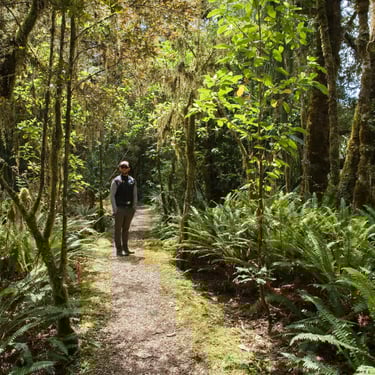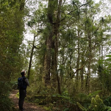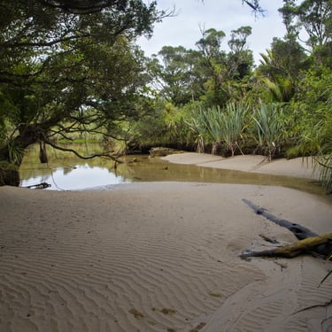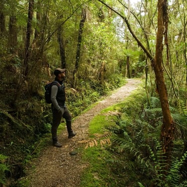 Z Karamei, vedla silnice ještě pár kilometrů dál na sever po pobřeží, kde silnice zcela končí a u tábořiště začíná vícedenní trek podél oceánu přes hory. Jmenuje se to tam Kohaihai. Když jsme si mysleli, že oceán na východním pobřeží je divoký, vůbec se to nedalo srovnat s tím západním. To teprve byl divoký oceán s vlnami bušícími do pobřeží. Také se zde zcela změnila krajina, protože celé pobřeží bylo hustě zalesněné řekněme tropickým lesem. Všude kolem se kromě jiných stromů nacházeli kapraďové palmy a další nejroztodivnější vegetace. My se zde vydali na začátek treku a strávili celý den cestou tam a zase zpátky. Proplétání se lesem se střídalo s procházením po visutých lávkách, výhledy na řeky, malé vodopádky průhledy na oceán a tunami sand flies. Kdykoliv se člověk zastavil, hned byli u něj. Zkrátka kdo nebyl v pohybu, byl sežrán.