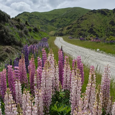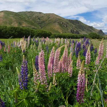 Ve zkratce jsme se tedy v posledních čtyřech volných dnech podívali do Wanaky, kde jsme koupili naše nová kola, která nám tu doteď chyběla, jako sůl. Já si vyhlídl své kolo na inzerát přes internet. Když jsme se ho vydali okouknout, Zuzce pán během mé testovací jízdy jen tak mezi řečí nadhodil, zda taky nepotřebuje kolo a o chvilku později vyvezl z garáže jeden kousek i pro ní. Dokonce nám při koupi kol celkovou částku trochu zaokrouhlil a udělal dobrou cenu. Přes průsmyk jsme se ten samý den vydali do Queenstownu do cyklo obchodu dokoupit nosič na kola na zadní dveře, abychom se nějak vešli a neomlacovali jsme si náš opečovávaný, krásný interiér a rovnou si našli místo na spaní pro daný den. Z města jsme se vrátili asi tři čtvrtě hodiny zpátky do kopců a zabydleli se na noc v jedné ze zatáček s brutálním výhledem z hor na město a jezero pod námi. Ráno jsme se vydali na kratší zdolání jednoho z přilehlých vrcholů a pelášili zase směrem na sad. Poté jsme vyjeli naposledy na výlet a to k hoře Mount Cook, která je nejvyšším vrcholem Nového Zélandu. Cestou jsme projeli přes Lindis Valley plné zrovna kvetoucích lupin. Pod Mount Cook se nachází dvě jezera, jedno modřejší než druhé. Po cestě k hoře jsme schytali asi náš největší vichr, kdy to naším vysokým autem smýkalo z jedné strany na druhou a Zuzka se zcela reálně bála, že se převrátíme na bok. Nepřevrátili, ale nic příjemného to nebylo. Samotná hora se nám ukázala pouze na chvíli a konstatovali jsme, že je tam na nás strašně moc lidí a poměrně nadšeně jsme se vrátili zpět do kempu. U druhého jezera jsme druhý den podnikli ještě jeden půldenní výlet a vrátili se do údolí lupin k poslední noci venku.