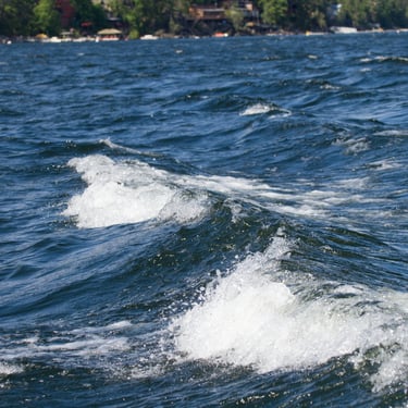 Za mosty jsou dva zelené majáky, které ohraničují mělčiny po pravé ruce při výjezdu z úžiny. U druhého na nás čeká Cory. Ptá se, zda zatím dobrý a my kýváme. Dodává, že teď už to rozjedeme, že máme jet za ním, že máme držet otáčky kolem 4 tisíc a že případně můžeme po rozjezdu zatrimovat (nastavit sklon motoru) motor, aby nám to lépe jelo a měli jsme plynulejší skluz. Na to to odpíchne a zmizí v dáli. My to tedy taky odpíchneme. Zuzka má smrt v očích a nevěří mi ani trochu. Já se tvářím normálně, zarputile. Ona při každé vlnce a změně směru křičí. Snižujeme tedy rychlost. Do toho nám píše Cory, že to naopak můžeme klidně osolit o dalších 500 otáček víc. Zde vlastně se ještě hodí napsat, že při spouštění lodě v maríně jen tak utrousil, že v lodi máme vlastně díru, ale že v poho, že stačí jenom každý den ráno a večer zapnout čerpadlo a dobrý. Zde zpět na jezero k naší první jízdě. K panice přidává Zuzka ještě pocit nutného okamžitého potopení lodě. Po chvíli se trochu uvolnila, ale stejně jsme toho moc nenamluvili. Teď po třech týdnech si již zvykla a občas se jen na mě mračí, když se zapomenu nebo přehlédnu jednu z vln přicházejících od jiné lodě. Když na takovou vlnu najedete příliš rychle nebo ve špatném úhlu nebo v kombinaci, zpětný náraz dna lodi do vody za vlnou je jako když mrdnete tunou hliníku z metru na beton, uznávám. Moc se nám to ale už nestává. Kdyby zápisky psala Zuzka, asi by přidala další výtky, ale smůla…