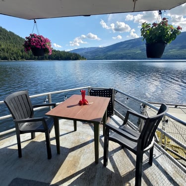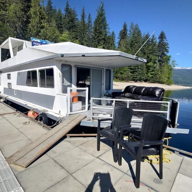 Naším soukromým prvním krokem ale bylo zobytnit a deratizovat náš nový domov. Před příjezdem jsme se různě dohadovali a básnili, jaký asi bude, co všechno tam bude a nebude a co nás vlastně čeká. Koukali jsme na nějaká videa, jaké houseboaty se na jezeře půjčují a byli v celku překvapení, co vše tam může být. Reálně jsme se ale radši připravovali na prolezlou díru a k té to ve výsledku mělo blíže. Poslední úpravou případně výrobou prošla naše loď tak na začátku osumdesátek. Navíc byla celou zimu někde v Sicamu v přístavu, přivezli jí do úžiny pár dní před námi, bydleli tu zmínění dřevorubci a před nimi v minulé sezóně sám chlápek, co dělal naší práci. Postupně jsme tak začali odmývat nádobí, vyhazovat ze skříní věci, co tu před námi nahromadili a stírat povrchy. Tak hrozné to nebylo, ale žádný luxus tu taky není. I když. Cory nám do nové sezony nakoupil novou deku a polštáře, nové ručníky a utěrky. Nějaké věci na úklid. Máme solár a baterky, takže máme elektřinu. Máme Stárlink od Elona, takže máme internety. Nemáme pitnou vodu a záchod (venku je soukr kadibudka).Máme ledničku, teče tu teplá voda, troubu, kamna na dřevo se suprovejma panďulákama hokejistů na dvířkách a skoro nám dovnitř neteče a z trupu musíme odčerpávat vodu jen asi jednou za tři dny a ne dvakrát denně. Ikdyž jsem si nastavil rutinu, že čerpadla v obou lodích pouštím každé ráno.