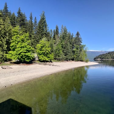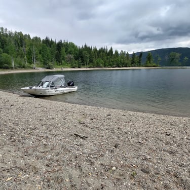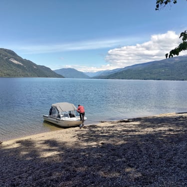 Po cestě si vyměňujeme několik zpráv s Krákorym, že to zítra jaksi nestíhá a že jestli můžeme přijet až někdy v deset dopoledne. Pak v jedenáct. My blahosklonně nabízíme tedy rovnou dvanáctou, že je nám to fuk a on ať má čas. Taky dodáváme, že si aspoň v klidu nakoupíme, dáme snídani a projdeme si Sicamous, což bude naše nové nejbližší město a místo, kde budeme mít zaparkované auto a kotvit loď. Vybíráme náhodný kemp, který je asi hodinu cesty od Sicamu.