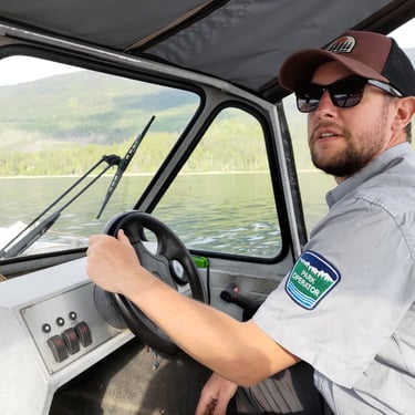 Naší náplní práce je v blíže nespecifikovaný čas, minimálně však jednou za den projet všechny parky. Buď autíčkem nebo na lodi. Okouknout, zda jsou všechny záchody vypíglované, s dostatkem hajzlpapíru, desinfekce na ruce a jsou prudce vonící osvěžovačema vzduchu. Okouknout všechna tábořiště, zda tam není bordel, co je třeba uklidit a hlavně okouknout, kdo kam přijel, jak dlouho tam má v plánu být a zdalipak má zaplaceno. Pokud zaplaceno nemá, nastoupí na řadu destičky s povolením a „registrace“ nových návštěvníků. My totiž nevybíráme peníze, ale registrujeme hosty. Všechny místa, kromě dvou, jsou přístupná pouze lodí. Ceny jsou tak nastavené fixně 20 dolarů za loď (auto) a noc. Ano někdy to je hloupé, když se vedle sebe sejde kajakář s hausbótem s třiceti lidmi na palubě, ale co naděláte. Plavidlo je plavidlo. No a to je vlastně všechno. Já si oblíbil tomu říkat, že jedeme na patrolu a je to vlastně sranda a baví nás to. Máme v popisu práce plížit se podél pláží, sledovat dalekohledem, zda lidi v parku nedělají bordel, zda mají lodě vylepené celoroční permanentky, případně přirážet ke břehu a vystavovat krátkodobá povolení. Něco mezi sekuriťákem v Kauflandu, pokladní a profesionální sousedkou. Jo a hajzlbábou. Do naší rutiny jsme zapadli tak rychle, že nejezdit jednou za týden / deset dní do města na nákupy, nevíme ani co je za den. Nám je to totiž jedno. Pracovat musíme každý den až do 15. září (kromě dvakrát čtyř noční dovolené, co jsme si vydupali). Jsme ale v krásném prostředí, nikdo nám nedýchá za krk a nekontroluje píchačky, máme co jíst a za to, že v přírodě trávíme čas na rozdíl od ostatních dostáváme zaplaceno my.