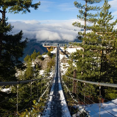 Naším včerejším výletem si odškrtáváme poslední squamishskou velkou atrakci a tou je lanovka do hor Sea to Sky Gondola. Dejte do vyhledávače Squamish a tady gondola vám vyjede, jako jeden z prvních odkazů. Od moře stoupá do slušných 850 m.n.m, odkud začínají různé treky do hor. Nad lanovkou pak ční vrchol Sky Pilot 2031m.n.m. Já chtěl z parkoviště vyjít pěšky k horní stanici lanovky, Zuzce se asi spíš moc nechtělo. Vysrabili jsme oba. Hlavně proto, že jsme v předvečer zjistili, že lanovka má svojí kartičku! Za 150 dolarů roční permice v akci teď do konce roku. Normálně stojí jedna cesta nahoru a dolu asi 80 – 90 dolarů. Pokud za námi někdo přijede, stejně sem pojedeme znovu. No, i kdyby ne, my se sem vracet budeme určitě. Včera se udělal krásný slunečný den. My si vyzvedáváme na recepci lanovky naše nové kartičky, sedáme do vajíčka a svištíme nahoru. Lanovka od moře míří přes kolmou skálu rovnou do kopců. Prvních 700 metrů nastoupá rovnou z kraje. Na horní stanici na nás čeká sníh. Ne úplně moc, ale třeba 30 cm to bude. Kromě jednotlivých stezek je místní atrakcí visutá lávka. Pořizujeme zde fotografie, kocháme se výhledy a vybíráme naší trasu. V jednu chvíli se usměje štěstí a z mraků se vyloupne vrchol Sky Pilotu a já mám jasno, kam se budeme muset někdy vypravit. Mimo jiné od lanovky taky začínají skialpové trasy do přiléhajících kopců. My pro dnešek, teda včerejšek, dáváme kratší výlet po okraji skály, k malému jezírku, ještě menšímu vodopádíčku a zpět domů. Tady nahoře nás to hodně baví a těšíme se, až se sem zase vrátíme.