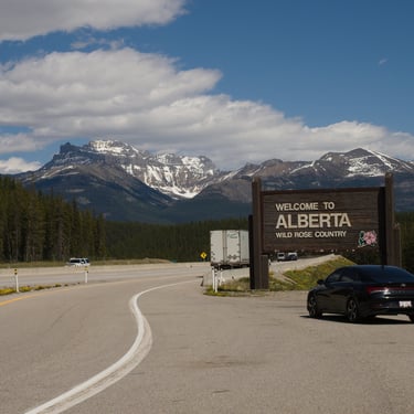 Nekecám, za každou zatáčkou z nás vypadlo, tyvole tady to je ještě hezčí. Zuzce zářily oči a prst na spoušti cvakal rychleji než prsty zapisovatelce u soudu. Do mě stejnou rychlostí padaly řízky a kilometry. Už po pár hodinách bylo jasné, že výběr fotek do galerie a článku bude oříšek, a to jsme byli na cestě sotva pár hodin. Jo a taky, že řízků bude málo! Mezi Glacier national park a Yoho national park leží město Golden. Tam jsme nezastavovali. Zmiňuji to jenom proto, abyste mohli šmejdit prstem po mapě. Taky se tam chystáme za 14 dní, až přijede Jakoubek (o tom příště). Za Yoho na chvilku sjedete z hor do údolí a taky překročíte hranici. Žádná spešl hitparáda, normálka odpočívadlo, cedule Alberta, rychlý čůrání, řízek, fotka a šup zase na cestu.
