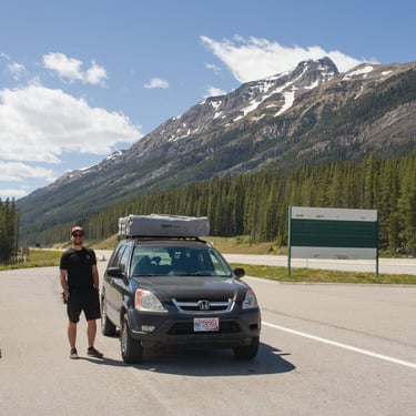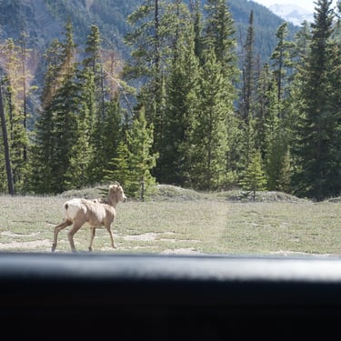 Přejezdem hranice se změnilo akorát to, že jsme vjeli do jiného národního parku a to tentokrát do Banffu. Taky se zde cesta začne stáčet k severu a průjezdem parkovou bránou / budkou vjedete na Icefields parkway. Tedy dálnici 93. Z Lake louise do Jasperu nějakých 230 scénických kilometrů z obou stran sevřených štíty zasněžených hor bez signálu a s jednou předraženou benzínkou v půlce cesty. Taky smaragdově modrými ledovcovými jezery, vopravdickym ledovcem, kterej tam už asi moc dlouho nebude, zvířenou a tůristama. Nebyla sezona a už jich tam bylo na náš vkus docela dost, bude to ale horší. Nicméně i tak jsme stejně jako všichni zastavovali snad každých 5 až deset kilometrů na vyhlídky a focení. Tady prostě nevíte kam koukat dřív. Tedy zcela přijímáme, že tu ti lidi jsou a stejně jako všichni ostatní čekáme na naší chvilku prázdného výhledu. Kdybych vám vyprávěl každou zastávku, budete tu hodně dlouho. Tedy za mě vtipnou zastávkou byla vyhlídka, která zjevně pro již vyčerpané zásoby jiných jmen, byla pojmenovaná prostě „Kozy a kopce.“ Zvířátka, přátelé. Teď se to snažím v mapě dohledat, abych si ověřil, že nekecám, ale možná už mě jen šálila moje přeřízkovaná mysl a mé myšlenky plynuly jiným směrem. Ale v tý době bych dal ruku do ohně za ty kozy. Jo a taky jsme tam potkali italský Dukáto s italskou spz, což klobouček před majitely, kteří byli zjevně na své cestě po Amerikách. Karmu jim trochu pokazilo, že jsme je akorát přistihli, když kradli dřevo z lesa. Ach ta evropská nátura. Poslední větou bych dodal, že když se řekne kanadská příroda a vybaví se vám nějaký proto obrázek, bude s největší pravděpodobností odsud. Jakože někde mezi Banffem, Jasperem a Yoho. Je to neskutečné a popisovat to někomu, kdo to neviděl, takřka nejde.