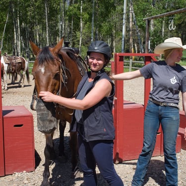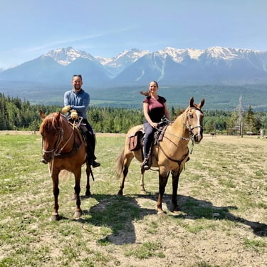 V úterý, náš předposlední den jsme na programu měli koně číslo dvě a Zuzanky dárek. Vybral jsem ho kousek dál směrem na sever od Jasperu, abychom se podívali na více míst. K dobru nám dokonce hrálo, že farma byla zpět v Britské Kolumbii, kde je o hodinu méně, protože nás čekala hodina a půl cesty a měli jsme na místě být v půl desáté dopoledne. Zarezervoval jsem nám dokonce čtyř hodinovou vyjížďku. Na místě, ještě před vystoupením z auta byl vidět patrný rozdíl ve vedení stájí. Z našeho pohledu, nám asi bližší, ranč, s nějakým tím harampádím kolem dokola, starým autobusem, kadibudkou. Při vystoupení z auta se za námi rozehnal menší pes, který se smál od ucha k uchu, i když štěkal. Hned jak si jej od koní zavolali nazpátek, že o nás vědí a že jsme vítaní začal kolem nás radostně pobíhat, jako blázen a nechal se odrbat od hlavy k patě. Jo, tady se nám bude líbit. Přivítali nás dvě mladé slečny, že nás na vyjížďku vezmou ony. Vypadlo z nich, že tam jsou na prázdniny z Dánska. Mimo jiné se nás rovnou na začátek zeptali, zda vážně chceme tu čtyř hodinovou vyjížďku, že má být horko a že trasa je vlastně nudná, celou cestu nahoru a pak zase zase jenom dolů. Ehm. Oká? Že to budeme mít levnější a že ta dvouhodinová, má vyhlídky taky a že je jejich oblíbená. To jsou tedy obchodnice. No asi se jim moc nechtělo na půl dne ven. No nic, rozhodli jsme se, že tedy na doporučení dáme dvouhodinovou jízdu a pak nám zbyde část dne na další výlet. Tedy byli jsme připraveni vyrazit. Dostali jsme rychlé bezpečnostní školení, podepsali jsme zbavení se odpovědnosti a jedem. Holky ukázaly na koně, zavelely, že máme nasednout a jede se. V prvních stájích nás ani nenechali sami nasednout. Museli jsme na stupínek se zábradlím, doprovod nám držel koně a dokud jsme neopustili stáje, vedli nás na vodítku. Milá změna. Vysedli jsme tedy na naše nové koně, já na hnědého, Zuzka na světle hnědého. Asi se barva nějak spešl jmenuje, ale to po mě nechtějte. Máte fotky. Tedy vyrazili jsme ve složení dvě průvodkyně, dva platící. Holky byly milé, hned se s námi dali do řeči a povídali jsme si vlastně celou cestu. Na rozdíl ale od první vyjížďky chybělo povídání o okolní krajině, zvířátkách, co vidíme a dalších věcech. To kovbojové v Jasperu měli krásně nacvičené. Zato ale koně, ti byli prvotřídní. Na sebe menší pomyšlení dělali přesně to, co jsme chtěli a šlapali pěkně z čerstva, až jsme museli každou chvílí čekat na slečnu průvodkyni na konci. Její kůň navíc v polovině cesty ztratil podkovu a ona chudák musela došlapat zpátky po svých. Slíbená dvouhodinová procházka se vinula v podstatě celou cestu lesem, po úzkých stezečkách a výhled se ukázal v polovině. Takže asi tak jako na té delší cestě. Nakonec z nich vypadlo, že do Kanady přijeli jen na turistická víza, u paní majitelky dobrovolničí a pracují za ubytování a stravu. Heh, pěkně si to paní majitelka zařídila. Po příjezdu zpět taky holky hned dostaly huláka, že nám nabídly kratší verzi. Srovnáním jsme tedy přišli na to, že je dobře, že jsme měli každý zážitek jinde a viděli dva zcela různé přístupy a dvě zcela jiné krajiny. U profesionálů v Jasperu jsme dostali nastrojené kovboje, krásné výhledy a přírodu, profesionální výklad o přírodě kolem, medvěda a přísná pravidla. U holek jsme se naopak cítili, jako když jedete se známými z jízdárny na dvě hodinky do lesa. Tedy příroda asi vyhrála v Jasperu a koně v druhé jízdárně. Taky jsme konstatovali, že bychom se už asi měli přestat považovat za začátečníky. Minimálně, co se v trailovém, volném, ježdění týče.