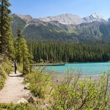 Díky obchodnicím jsme vyhráli půl dne jiného výletu a ke koním a kánoím tak přidali i lehký výšlap. Po cestě na koně jsme totiž zahlédli velkou horu u silnice, nějaký stánek a infocentrum a na zdařbůh při cestě zpět zastavili. Na místě jsme zjistili, že jsme vlastně šťastlivci, protože jsme zastavili pod nejvyšší horou Skalistých hor, Mount Robson. Zuzka ještě v autě odhadla, že tu přeci musí být i jezero a že se k němu určitě musí dát dojít. Měla pravdu. Jezer bylo nad sebou po cestě pod vrchol dokonce více a my vyrazili k prvnímu z nich. Bylo to nějakých pět kilometrů a vzhledem k tomu, že s počasím se předtím děvčata trefila, bylo to akorát.