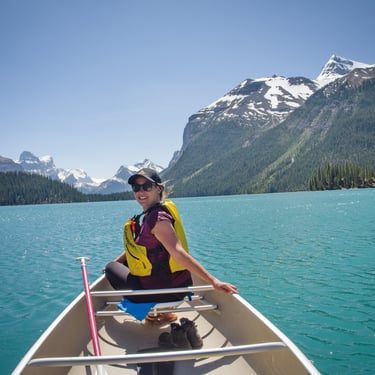Abychom oddělili od sebe dva koňo dny, museli jsme si odškrtnout další kanadský zážitek a to vyjížďku na kánoi. Chtěli jsme dát více denní kempování s táboráky a buřty a tak, ale zmenšená verze byla také pecka. Čekal nás totiž celodenní výlet na Maligne lake k Spirit Islandu, který je na přebalu každého druhého průvodce. 14 kilometrů každým směrem. Abychom to stihli, přivstali jsme si, zabalili auto a přesunuli se k jezeru už v šest ráno a před sedmou jsme již nabalení v péřovkách pádlovali k našemu cíli. Jezero bylo nádherné, voda studená, jako kráva, sluníčko ze začátku v nedohlednu. Postupně se však oteplilo, až skoro k nevydržení. Co nás překvapilo, že celý den jsme vlastně na jezeře pádlovali skoro sami. Kromě dvou kánoí s rybáři ráno, asi třech skupinek lidí vracejících se zpět v opačném směru z kempování a vyhlídkových lodí pendlujících po jezeře tam a zpět, tam nebyl nikdo. Idylka. Po cestě se otvíraly brutální výhledy. My si zastavovali, kde jsme chtěli, chvilkami bojovali s větry, baštili svačinky, odpíjeli pivo, koupali se, až jsme dosáhli našeho cíle. U Spirit Islandu, což vlastně není ostrov, ale polo ostrov, jsme přijeli kolem poledne, což Zuzka okomentovala, že světlo na hovno a konstatovali jsme, že tisíc lepších výhledů bylo spíš po cestě, než na Té jedné vyhlídce. Ke cti alespoň, že jsme vychytali okno asi 20ti minut, kdy jsme na místě byli pouze my a komáři! Celkově celý kánojový zážitek byl báječný, na přírodu a výhledy plný a ke konci maličko dlouhý. Větry se rozfoukaly a my měli skoro celou cestu zpět proti nim a to na těch necelých 30km za den, nebylo málo. K tomu žhnulo slunce až běda! Ale stálo to za to!