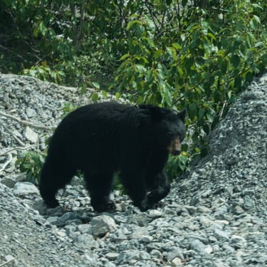 Poslední den, byl také mým narozeninovým dnem a tak jsme před odjezdem z Jasperu zamířili na snídani a já si objednal pěkně lívance s javorovým sirupem, ovocem a slaninou. Mňáám! Při snídani jsme si všimli, že ranní mlha se nějak nechce rozehnat a že je už od úsvitu tak nějak divě pošmourno a v zápětí jsme dostali vysvětlení, že od severu vítr přihnal kouř z probíhajícíh požárů, které zase Kanadu sužují. Z všech krásných výhledů a zasněžených vrcholků hor bylo velké prd a nám došlo, jaké štěstí na počasí jsme ty předchozí dny měli. Z lívanců jsme vyrazili rovnou na cestu zpět zase přes Icefield parkway. Kouř z oblohy zmizel až daleko za Jasperem. V půli cesty jsme do Lake Louise jsme zastavili na Athabasca Glacier. Před sto lety byl ledovec ještě přes dálnici, dnes se za ním muselo jít pořádný kus cesty. Icefield parkway se s námi nakonec rozloučila sérií střetnutí s místní zvěřenou. Rozloučením s našimi pěti nádhernými dny tak byl další medvěd, tentokrát černý. Tenhle konkrétní kousek v evoluci dosáhl dalšího stupně, protože pochopil, že turisticky frekventovanou dálnici je možné přejít jedině tehdy, pokud se nejdřív postavíte před dálnicí na veliký šutr, budete se tam ochomýtat, bez hnutí zapózujete, počkáte až všechny auta kolem zastaví, turisti vytvoří nepropustný koridor z obou směrů, kompletně zastaví veškerou dopravu a vuolá! Vy máte volnou cestu mořem aut k druhému břehu. Za ním se cesta hned zavřela, závěry fotoaparátů docvakali a my bez dalšího problému v pořádku dorazili domů. Jo teda bez problémů úplně né, protože jsme začali pozorovat čím dál větší chvění volantu, až nám doma v Sicamu začalo auto i táhnout na stranu. No super. Teď v týdnu jsme auto dali zase do servisu a a chytré hlavy přišli na to, že prý máme úplně sjetou gumu až na výztuž. No, říkáme si, že toho bychom si přece museli všimnout, ale co se dá dělat. Budeme tedy mít nové pneumatiky všechny čtyři a my budeme muset přihodit nějaký peníz na finální prodejní ceně auta. Takovou za chvíli budeme prodávat Ferrari a ne naší Hondu. No nic. Tak zase příště.