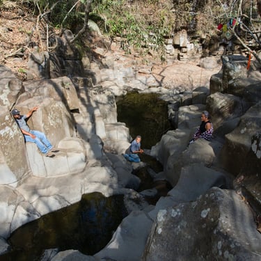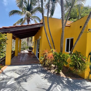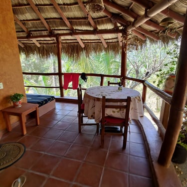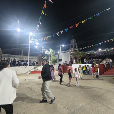 Třetí ubytování jsme zarezervovali na celý poslední týden a tentokrát dál od oceánu v kopcích. Byla to vesnice asi tak o 200 lidech. My si vybrali na naše poměry docela luxusní ubytování s bazénem, televizí a brutálními výhledy na oceán a západy slunce. Ač to je k nevíře, naše tempo spadlo ještě níž a my náš pohyb a aktivitu omezili na jednu podvečerní návštěvu návsi do krámu. S první procházkou na náves jsme se v duchu vrátili do prvního dne v Domamyšli. Byli jsme zde jediní bílí (to zrovna s Domamyšlí nesouvisí, aby se náhodou domácí neurazili) a jako cizáci jsme svítili široko daleko. Všichni ale nakonec byli milí, pěkně zdravili a vůbec si nás nevšímali. Trefili jsme se zde do místních svátků, kdy svátek práce slavili devět dní v kuse. Pro nás to naštěstí znamenalo, že kromě obchodu byl skoro každý den otevřený nějaký stánek s jídlem. To si můžete představit tak, že několik rodin vytáhlo gril, topeniště nebo pojízdný stánek před barák na ulici, k tomu dotáhli pár plastových židlí, co dům dal a pěkně rukama bez mytí začali patlat a smažit a grilovat tu tacos, tu hamburgery, tu párky v rohlíku. Mňam, ale všechno bylo hrozně dobrý. Jeden večer přijela i kapela. Na prašný pahorek nad betonovým pláckem uprostřed vesnice přijeli s pickupem, na autobaterku napíchli světla, z kostela dotáhli prodlužku, zapojili dva mini repráky, z nichž jeden skoro nehrál a na improvizované pódium se vyvalilo asi deset kapelníků, spíš i víc, v modrých sakách. Měli trubky, trombony, klarinet, tubu, kytary, slepýho bubeníka, perkusistu a asi tři zpěváky. Hustý. Kromě místního opilce, který dvakrát z návrší spadnul se k tanci měla jen místní odvážná žena v našich letech, která postupně vytáhla tančit všechny dospívající dívky, jeden kovbojský pár s paní, jejíž zadek a prsa byla velikosti přezrálých dýní a pánův pupek stejné velikosti (přesto se pohybovali nečekaně lehce) a sem tam osmělivší se mladý muž, který vyzval svoji vrstevnici. Jo a spousta okolostojících přihlížejících. Zkrátka vesnická zábava jak víno, teda tequilla. Akorát se na nás překvapivě málo pilo. Rozhodně jsme si ale mohli odškrtnout nefalšovanou místní zábavu.