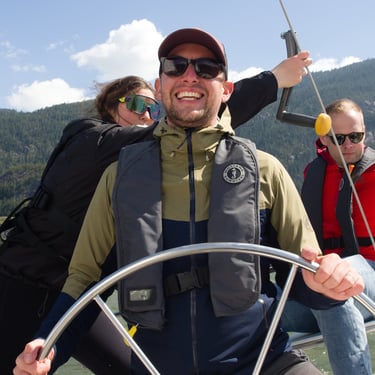 S Kanadou jsme se po návratu přivítali slovy „uf, konečně doma“ a upřímně to tak i cítili. V noci jsme se pochválili, že jsme dotáhli do konce náš boj, za zachování nafouklé pneumatiky a vyrazili ještě hned do Squamishe. Tam nám nabídli domácí, že nás nechají u nich doma jednu noc přespat, abychom nemuseli kempovat. Hlavně druhý den po dovolené, nás čekala další dovolená. A to tentokrát vyčerpání mého vánočního dárku, jachtingu. Dostal jsem totiž darem odpolední projížďku Howe soundem (squamishským zálivem) na plachetnici. Ráno jsme se pomalu vyprdelili od domácích, donaložili poslední věci, co jsme u nich měli uschované a odjeli do downtouwnu na oběd před plachtěním. Byl nádherný den. Zcela náhodou jsme trefili jeden jediný slunečný den mezi dny totálně prochcanými a navíc korunovaný větry, přesahujícími 25 uzlů (přes 12 metrů, to už fouká pěkně zčerstva a začíná vám na kiteování stačit ikea taška). Před jízdou jsme ale byli prozkoumat novou restauraci a dali si excelentní poutine. Hranolky se sýrem a případně dalšími věcmi, přelitými teplou hnědou kejdičkou. Mňam! Po zaplacení jsme se přesunuli do přístavu a Zuzka začala z ničeho nic hlásit akutní problémy se svojí hnědou kejdičkou, blee! Zdá se, že jí něco nesedlo v její porci a spustila se hra o čas. Naštěstí měli v přístavu záchod. Nevypadalo to totiž vůbec dobře. K nástupu na loď jí nakonec uchlácholila přítomnost dalšího záchodu na palubě plachetnice. Mě tak začal boj s větry, Zuzce s jejím zažíváním. Jízda to byla parádní! Opravdu foukalo tak, že jiné lodě se z přístavu neodvážili. Oceán jsme tak sdíleli pouze s kitery. Naše dvoučlenná posádka, kterou tvořil sympatický kapitán a mladá slečna, ze které se vyklubala kamarádka našich kolegů z práce, se snažila nám zprostředkovat zážitek, co to šlo. S námi byli na palubě další čtyři lidi. Postupně jsme se tak i vystřídali u kormidla a ovládání plachet. Já byl v sedmém nebi o to více, o co se nakláněla loď. Zuzku zaměstnávala kupodivu fotografie, nikoliv její zažívání. Jediné, co nakonec chybělo k dokonalosti byly velryby, které před námi bohužel zůstaly schované. Tři hodiny nám utekly jako voda a to bez jediného problému. Po návratu na pevnou zem se nicméně navrátila i všednost okamžiků a Zuzka návrat oslavila v sedě. Na to, že nás čekal přesun na bázi pod Kolagenem, kde jsme si domluvili grilovačku na dnešní noc, nic moc.