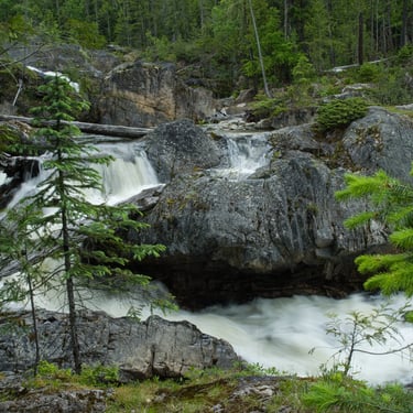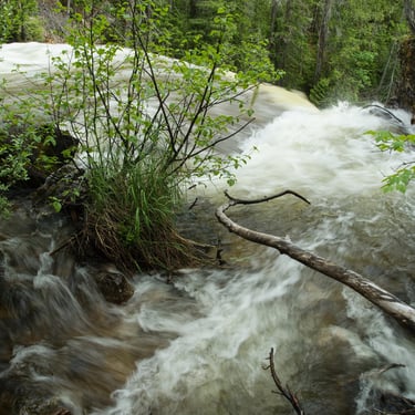 Asi o týden později jsme se rozhodli, že konečně pojedeme na výlet někam jinam, než jen na naše pracovní pláže a že tedy pojedeme na stranu jezera, kde jsme ještě nebyli. U toho že navštívíme naše pracovní kolegy, co jsme také ještě neviděli. Předtím, že se ale podíváme k vodopádům Albas Falls, které jsou asi tři čtvrtiny cesty k nim. Zastavíme tak na nové pláži, kocháme se přírodou a vydáváme se na asi pěti kilometrový okruh kolem vodopádů. Po cestě žertujeme, že je vidět, že park spravují jiní operátoři (naši kolegové) a že my bychom tedy tak neupravené cesty neměly. Asi po dvaceti minutách přicházíme k prvním vodopádům a žasneme nad jejich velikostí. Teď je asi nejlepší doba na vodopády, protože sníh stále odtává, hladina jezera stále ještě nedosáhla kulminace, která se odhaduje asi v polovině června, a tak vodopády byly doslova přeplněné burácející masou. Oba jsme se shodli, že tolik vody jsme nezažili ani na vodopádech v Rakousku na jaře. Nad prvními vodopády jsou vodopády druhé, ještě masivnější. Nádherný kus přírody. Při cestě zpět začne opět foukat a my se trochu nervózně začneme smát, že se přeci nemůžeme podruhé ocitnout v té samé pasti. Nemůžeme, máte pravdu. Je to totiž ještě horší. Teda ne v lese, z toho se dostáváme poměrně brzy a padající stromy slyšíme jen v dálce, ale zato na vodě, se dějí divy. Pro referenci se tentokrát nacházíme ještě dál než při první bouři. Stojíme na pláži, pozorujeme vytrvalý déšť a zvedající se vlny. Po půl hodince a pár sms se rozhodujeme, že návštěvu kamarádů rušíme a obracíme zpět do středu jezera (tvar písmene H, vzpomeňte) a že se pokusíme dojet ideálně až domů. Hned za rohem se podmínky dostanou na úroveň předchozí bouře. Za dalším obyhem se vlny ještě zvětší a to na odhadovaný metr a půl výšky. Zuzka se nefalšovaně začíná bát a trochu panikařit a trochu víc nahlas nadávat a malinko si zoufat. I já bez debat usuzuji, že dál se proti vlnám neprobojujeme a že musíme otočit. Což byl docela zajímavý krok. Vlny totiž měly velmi nepříjemnou frekvenci a chodily za sebou sotva v dvoumetrovém rozestupu a to s šestimetrovou lodí je nehezká věc. No, vzhledem k tomu, že si o tom čtete, tak víte, že to dopadlo dobře. My se otočili, já navrhl s vlnami splout níže a postupně traverzovat přes celou šířku jezera k druhému břehu, který byl o něco víc krytý před větrem a postupně se plahočit domů. Sranda už to nebyla, ale ještě pořád jsem si pobrukoval. Abych Zuzku ale nedráždil, jen v hlavě. Jsem trochu magor. Pořád to nebyly podmínky, které by nás potopili (přes příď nepřešla ani jedna vlna), ale nic příjemného to už taky nebylo.