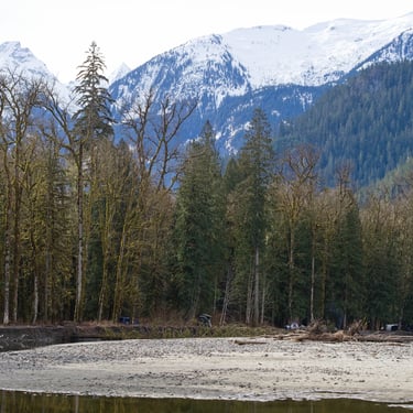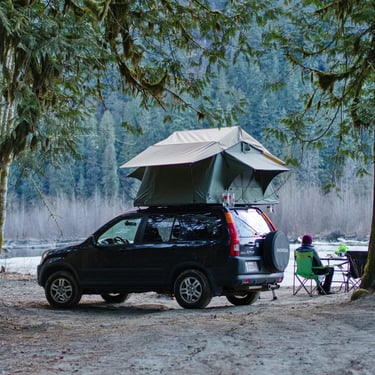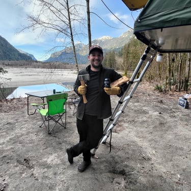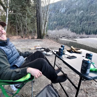 Přišel pátek a den našeho prvního kempování. Já nemohl nedočkáním dospat a Zuzka naopak chtěla vyrazit co nejpozději. Vybrali jsme si po konzultaci s bytným místo severně od města u Squamish river asi 40 minut od nás a z toho tak 20 po štěrkovkách. Když jsme sjeli z asfaltu já si začal spokojeně pobrukovat a ve chvíli, kdy jsme míjeli první tábořiště mě trochu zaskočila moje vlastní naivita, že budeme v lese sami. Na oficiálním tábořišti bylo asi tak šest aut a dodávek a tím pádem vlastně asi plno. My pokračovali dál proti proudu a já se začal malinko obávat, abychom vůbec nějaké místo našli. A to byl teprve konec února! Nedovedu si představit, jak natřískáno bude v letní sezóně. Nakonec jsme zastavili na doporučeném místě a i zde už byli roztahaní lidé. My si nicméně šikovně všimli denního rybáře, co si akorát stahoval kalhoty (teda jakože ty gumový na rybaření) a vypadal, že bude odjíždět. Počkali jsme si a asi po pěti minutách podle našeho mínění zaparkovali na nejlepším spotu. Na vedlejším místě, které v tu chvíli bylo stále volné jsme si dokonce všimli zanechaného dříví od minulých táborníků. Zuzce to přišlo blbý, mě vůbec, tak jsme se shodli, že si přivlastníme jenom trochu dříví. Vědět, že hodinu po nás si přijdou jiní a vyberou úplně všechno, vzali bychom ho my. Tedy chviličkou pojíždění sem a tam jsme postavili Hondičku do roviny a přišel čas na první rozbalení stanu. Na videích to lidem trvá přibližně 5 minut a já si tak nechávám Zuzkou stopovat čas. Mno… stihl jsem to za 15 a s pomocí, ale snad to bylo tím, že to bylo poprvé. Uvidíme příště. V tu chvíli se na nás z kufru začala smát připravená piva, ale silou vůle jsme se ještě donutili rozestavět židličky a stolek. Já se už chystal, že hned začnu rozdělávat oheň, ale vyšší moc mě zastavila, že je příliš brzy a i s přivlastněným dřevem budeme mít málo a že musíme počkat až navečer. Byl tedy čas zasednout a načnout první pivo. Vdechli jsme ho snad na počkání. Já v tu chvíli nevěděl jestli mám mít otočenou k popíjení židličku s výhledem na řeku nebo otočenou směrem k autu se stanem. Začali jsme brebentit, plánovat, jak nám v tu chvíli chybí už jenom medvědi na břehu řeky a Zuzce asi tak o 10 stupňů tepleji. Nicméně navlečeni do našich nových vlněných košil a s pivem v ruce nám bylo hej. V jednu chvíli jsem to nevydržel a musel jsem požádat Zuzanku, aby mě vyfotila pěkně s polínkem, pivem a novou sekerkou. Zpětně mě akorát mrzí, že nemám v ruce ještě tu pánvičku! No co vám budu povídat, byl jsem v sedmém nebi. Epesní romantiku nám akorát s postupem času malinko nakřápli další přijížděníjící, kteří si uspořádali malou diskotéku, ale s odpitými pivy nám to bylo jedno a později hudba zcela utichla. Když se setmělo, začali jsme se projídat zásobami jídla a konečně pokřtili i pánvičku. S odpitými pivy začala naplno pracovat i naše fantazie a v ohni se začali zjevovat roztodivná zvířata a tvary. V galerii tak můžete obdivovat lišku, orla i holubici. S pivy začala padat i zima a nesedět u ohně, možná bychom si i říkali, že kempovat v únoru zas tak super nápad není. No, co vám budu povídat, v našich letních spacákách nám byla kosa, ale stálo to za to. Ve stanu se leželo parádně a probuzení u řeky na střeše auta má sakra něco do sebe. Nemůžeme se dočkat léta. Jedinou drobnou kaňkou kromě zimy z pohledu Zuzanky bylo poučení, že deset piv je deset piv a že taková teplá sprcha doma a čínská polévka jsou dobrými přáteli, když vám je ouzko.