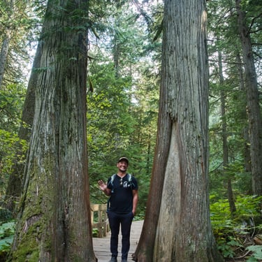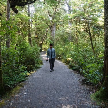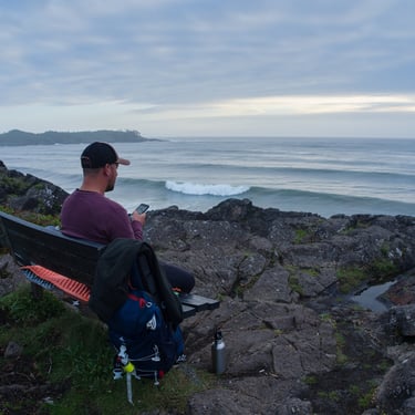 Mimo surfování je Tofino i místem nádherné drsné přírody s pacifickým deštným pralesem. Díky větrům, co vanou od oceánům a častým bouřím, zde není nouze o vodu a na přírodě je to znát. Nádherné pokroucené, mechem porostlé lesy plné medvědů a vlků. My si dopředu rezervovali tři noci v nádherném novém kempu zasazeným do jednoho z lesů kousek od pláže. Vytáhli jsme konečně zase jednou kola, vydali se do města prozkoumávat, večer popíjet víno na útesech při čekání na západ slunce. Pozorovali jsme vlny, surfaře a čekali na kosatky a velryby. Okamžitě jsme se shodli, že kromě hor v našem životě potřebujeme i moře / oceán. Za mě spíše takovýhle, studenější a ošlehanější než středozemní moře, ale budiž. Na poslední noc jsme si schovali zlatý hřeb, proč jsme do Tofina jeli my a to byl výlet na jeden z nedalekých opuštěných ostrovů, kde jsou mořští vlci, je možné pozorovat kosatky a velryby.
