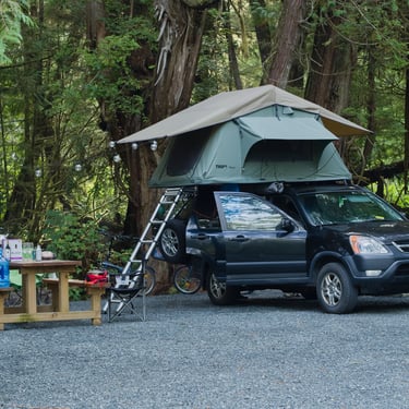 Kdy přestalo pršet byly dvě chvíle, obě zpátky „u nás doma“ u Rumunů ve Squamishi. Poprvé, když jsme se rozhodli naposledy vyjet na gondolu a udělat si výlet v kopcích. Podruhé, když jsme definitivně prodávali auto. To bylo teď v úterý. S Ludevine a Corym jsme se potkali tady na parkovišti před nákupákem u alá magistrátu. S přehledem jsme jim tak zvládli naposledy otevřít stan a ukázat jim, jak ho zase složit, ukázat jim kola a udělat společné fotky u auta. Samotný prodej proběhl neuvěřitelně hladce a přesně tak, jak jsme se společně domluvili. Dohromady jsme se shodli na tom, že budou naší Hondičce dobrými novými majiteli a že se o ní určitě budou starat příkladně a vezmou jí na spoustu dalších výletů. Taky jsme se shodli, že je škoda, že jsme se vlastně poznali na konci a že bude fajn, až se vrátíme a pojedeme společně kempovat, protože jsme si padli navzájem do oka. Závěrem se nám dokonce povedlo, si za drobný poplatek nechat jednu z registračních značek na památku. Měli jsme totiž ty pěkné, s horama a to by byla věčná škoda, kdybychom jí nemohli mít.